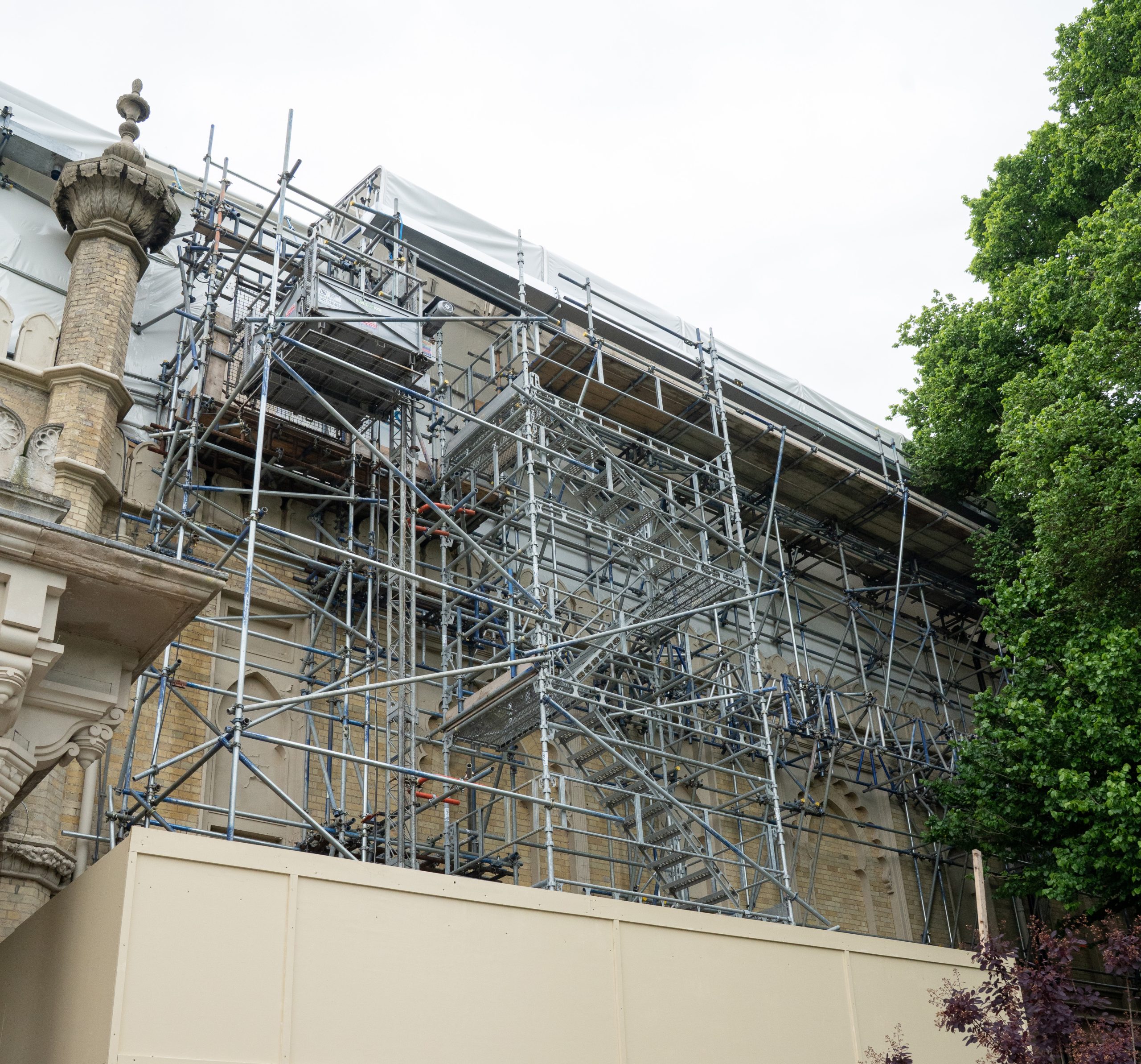 Over 400 hours of design development led to ‘A’ Status approval. Bespoke internal and external scaffold solutions were engineered to overcome significant constraints, including tree protection zones, poor ground load capacity, and strict conservation requirements.